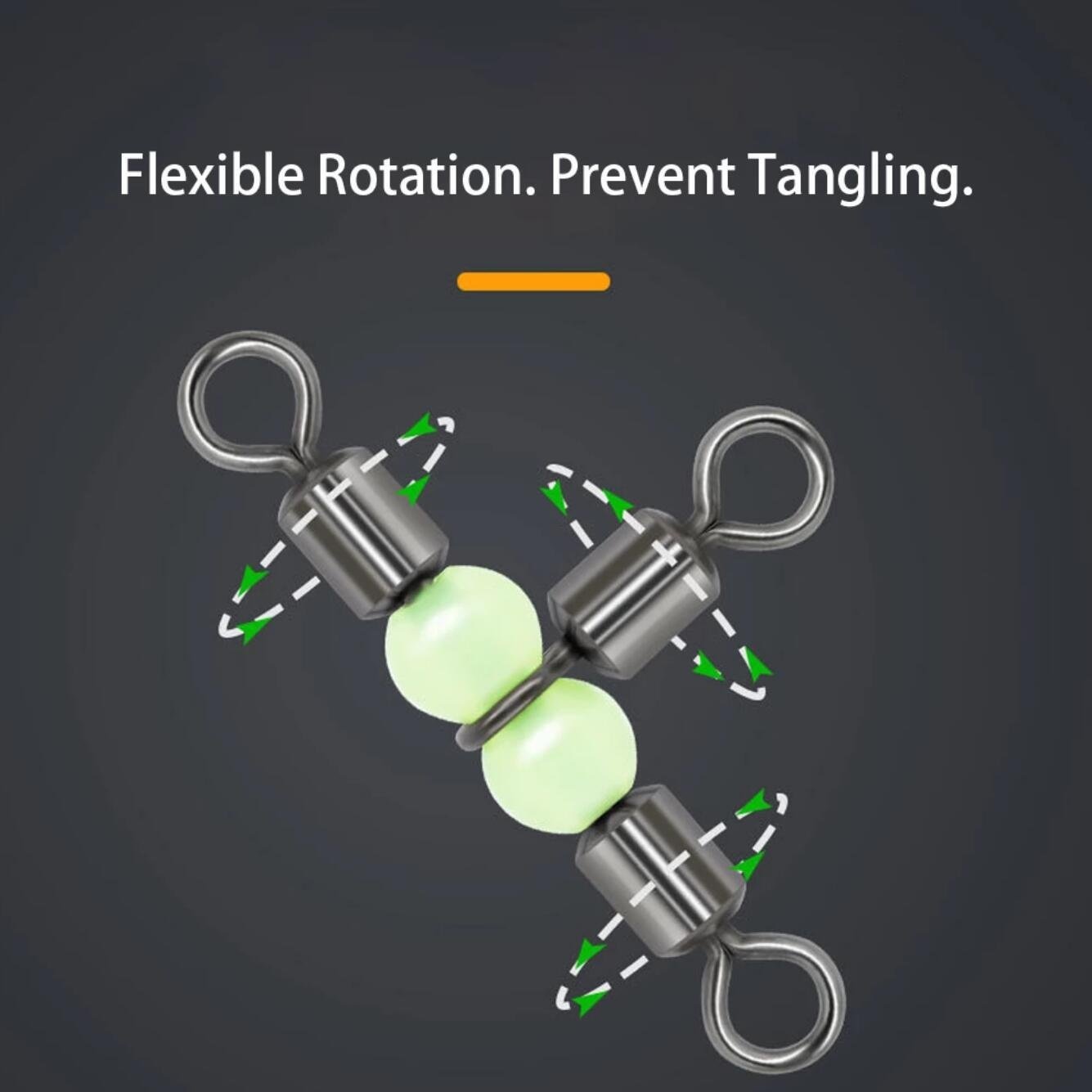 10/20/30/40pcs Cross Line Rolling Swivel With Pearl Luminous Beads; 3 Way Rigs Fishing Tackle Connector For Drifting Trolling